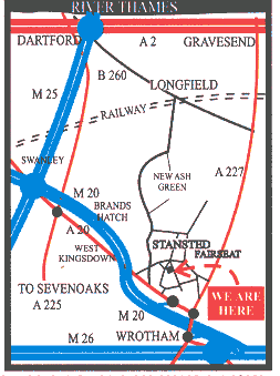Under Motorway bridge, then 1st Left into Stansted Road.